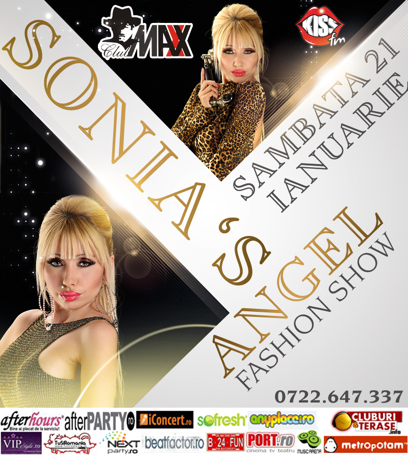 Creatoarea de moda Sonia Trifan prezinta noua colectie "Sonia's Angel", Sambata 21 Ianuarie @ Club Maxx, alaturi de modelele Alice Iotta (sora Simonei Senzual), Laurette, Sonia Trifan. Info&Rezervari: 0722.647.337